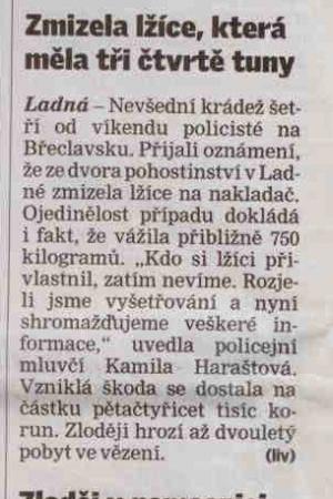 Zmizela lžíce, která měla tři čtvrtě tuny
