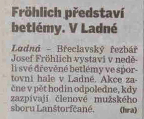 Frölich představí betlémy. V Ladné
