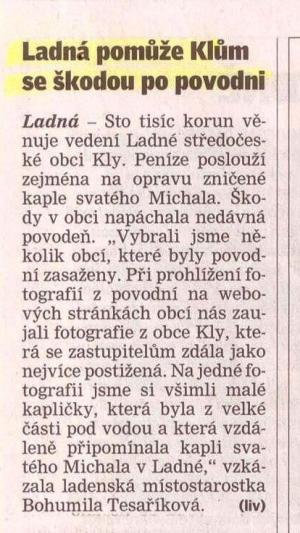 Ladná pomůže Klům se škodou po povodni