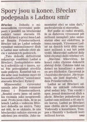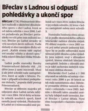 Břeclav s Ladnou si odpustí pohledávky a ukončí spor