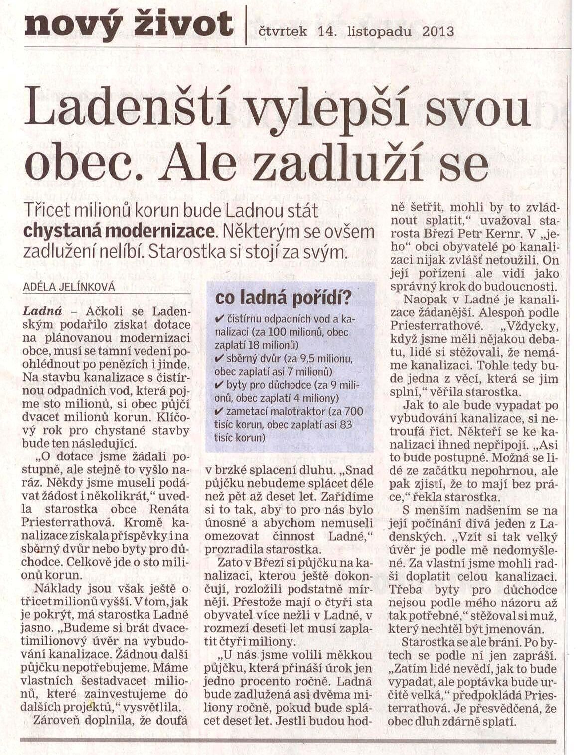 Ladenští vylepší svou obec, Ale zadluží se