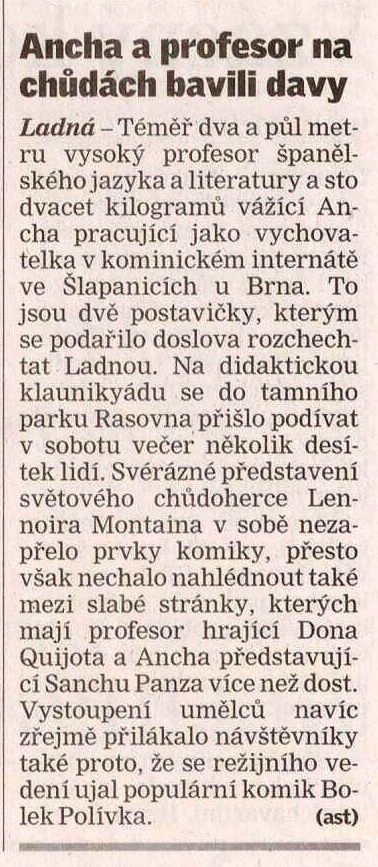 Ancha a profesor na chůdách bavili davy