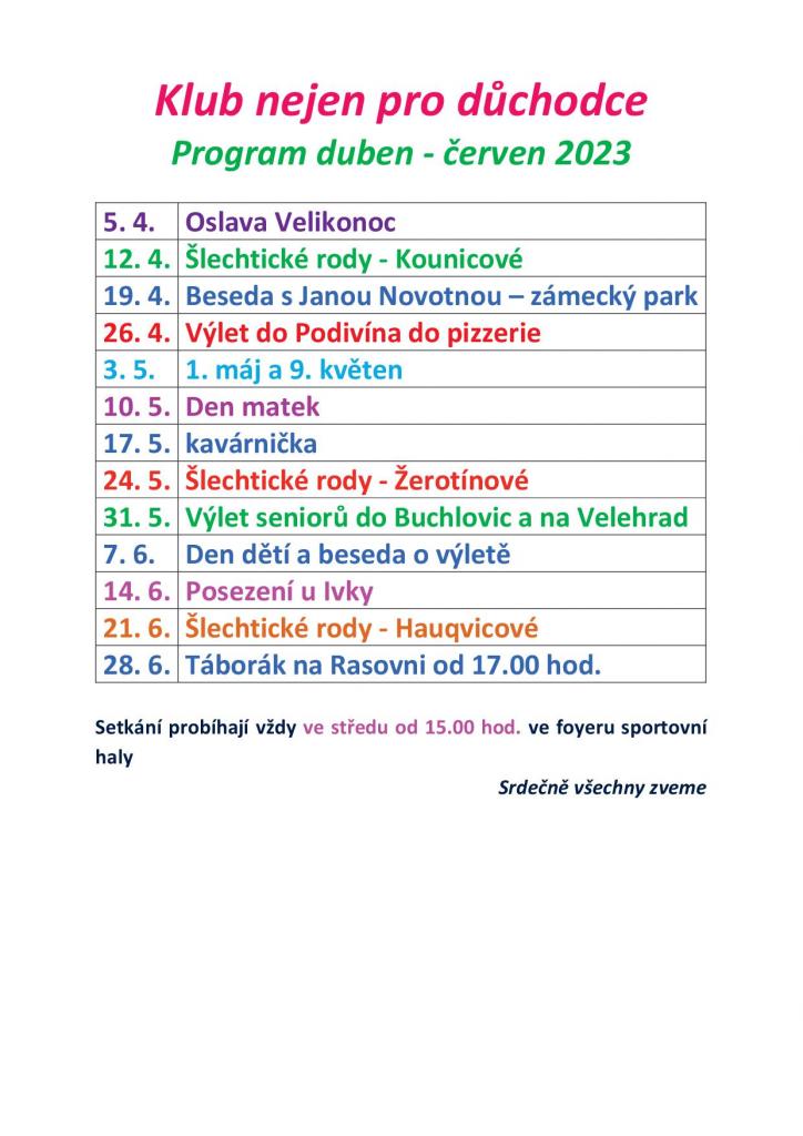 Program aktivit duben - červen 2023