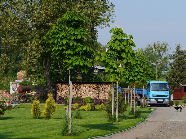 Popis: Výsadba kaštanů na okraji obce